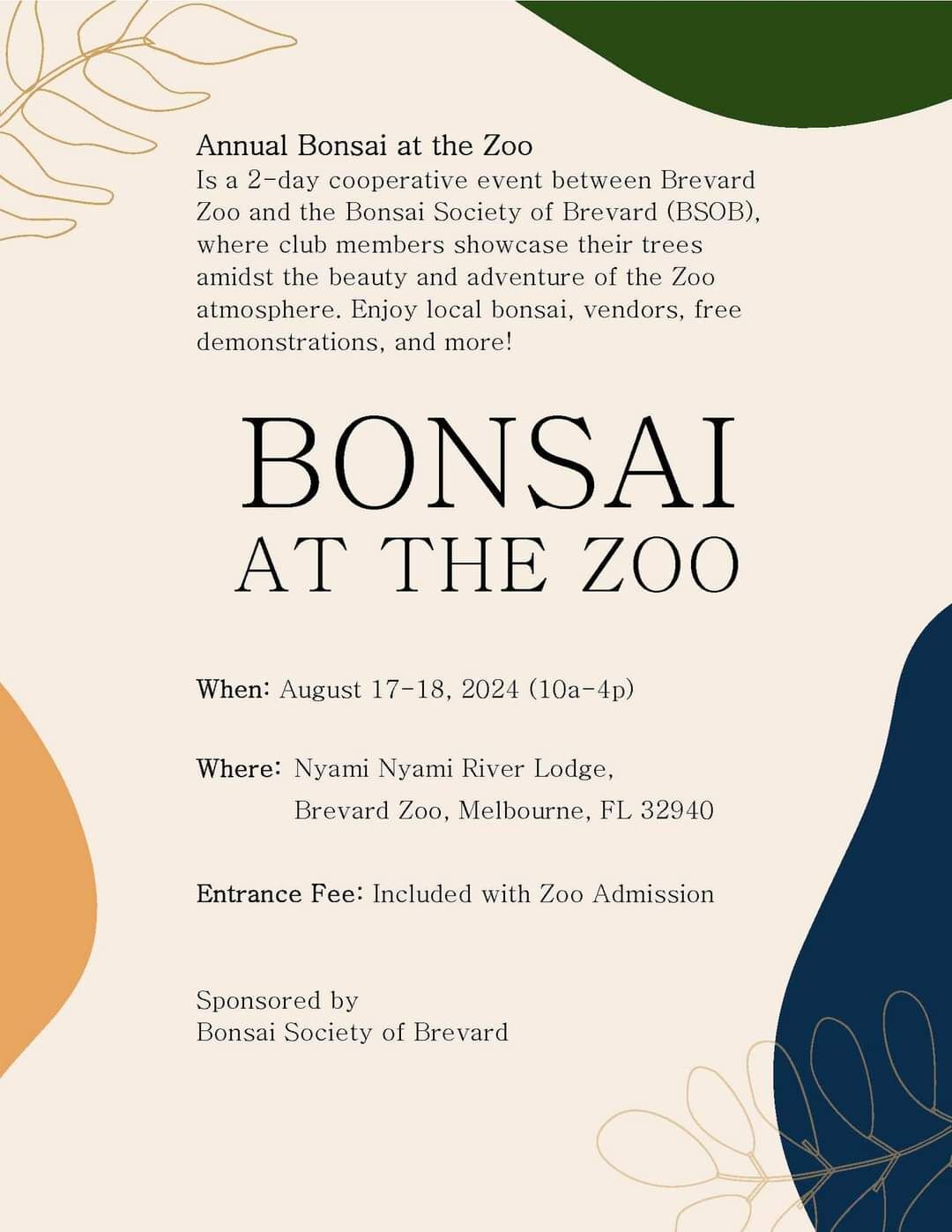 The Bonsai Society of Brevard is hosting a 2 day cooperative event at The Brevard Zoo. With over 40 stunning miniature trees to immerse yourself in the art of Bonsai.